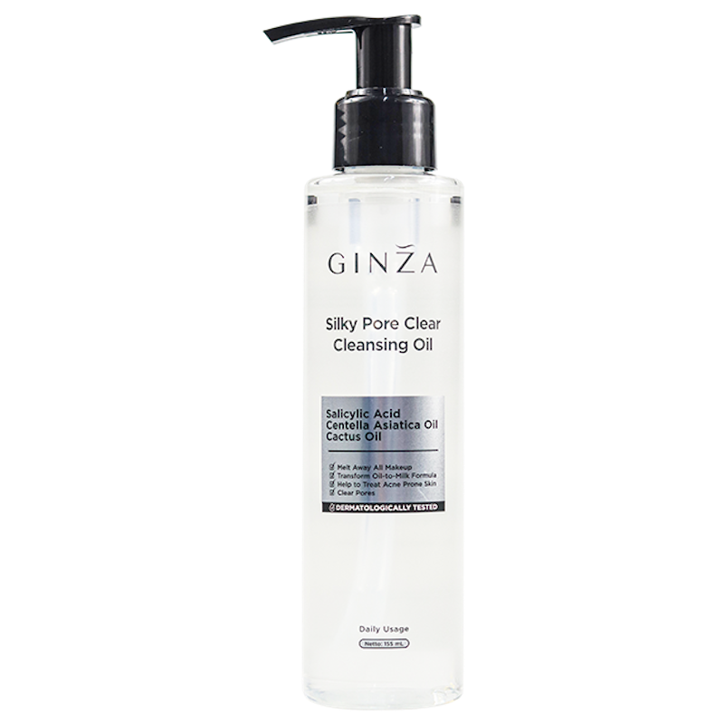 Ginza Silky Pore Clear Cleansing Oil dengan formula transform oil to milk, membersihkan makeup waterproof dan kotoran. Mengandung BHA untuk mengurangi risiko jerawat, menjaga pori-pori tetap bersih dan sehat.