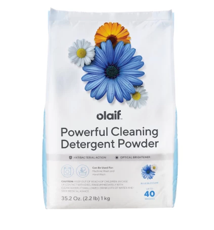 Olaif Powerful Cleaning Detergent Powder memberikan pakaian bersih, putih, dan harum dengan teknologi Optical Brightener dan antibakteri, cocok untuk semua metode mencuci.