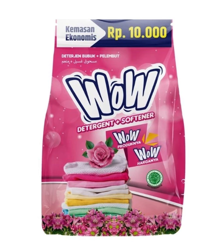 WOW 2000 Detergent + Softener Pink 500 g memberikan pakaian bersih dan cemerlang dengan busa melimpah, serta harga ekonomis untuk hasil mencuci yang maksimal.