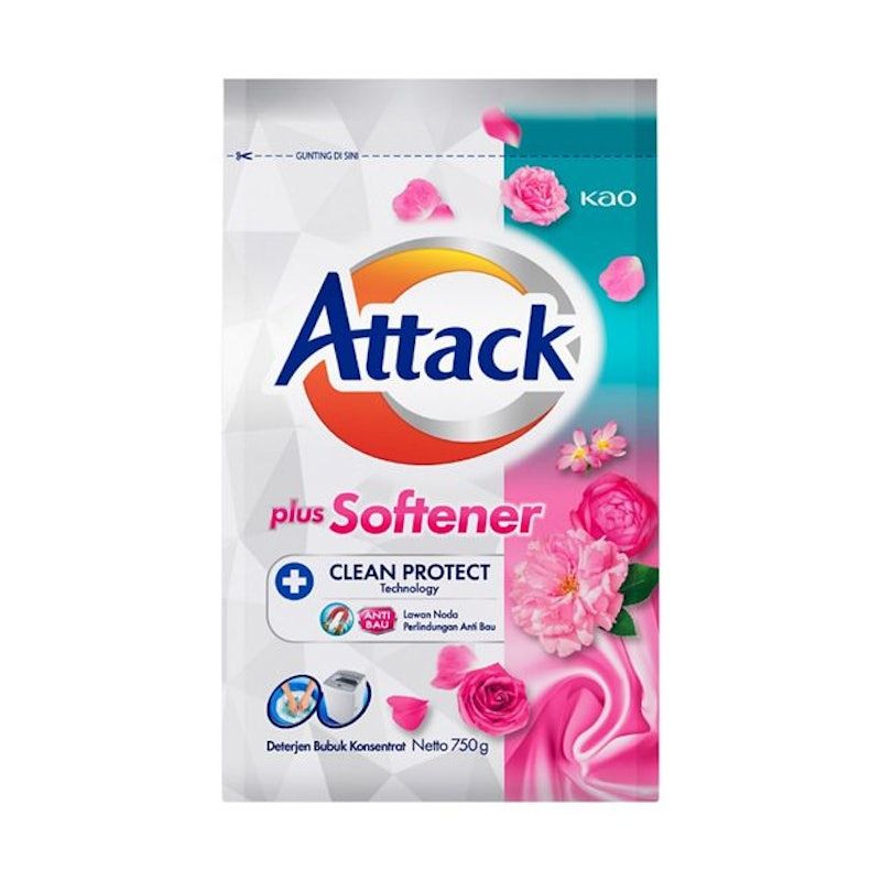 Attack Plus Softener mengangkat noda sulit, menjaga pakaian tetap harum, dan bebas bau apak dengan teknologi Clean Protect untuk perlindungan menyeluruh.