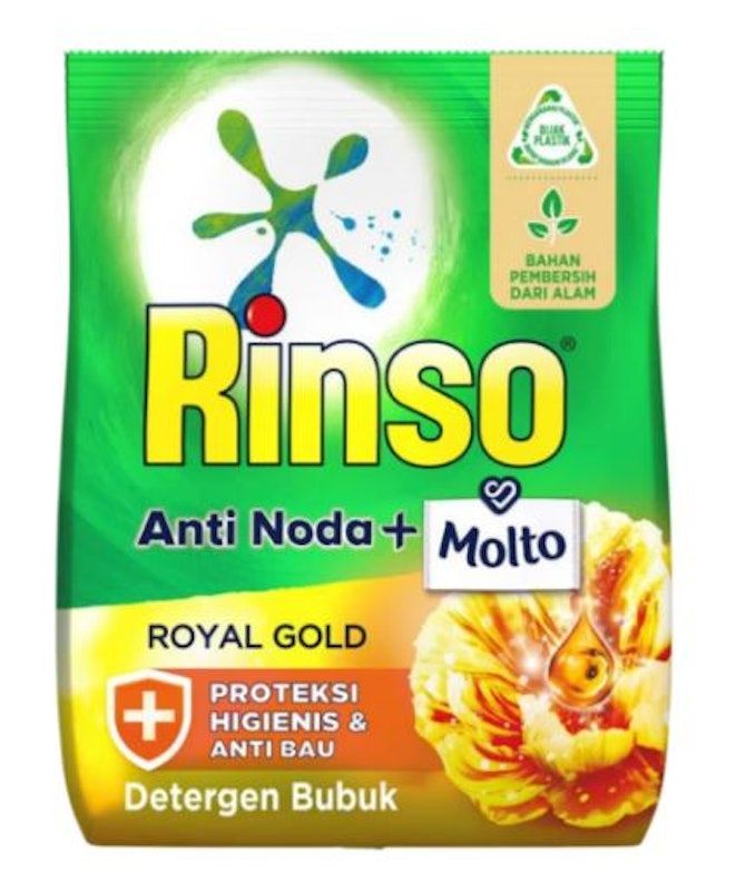 Uniknya lagi, varian ini memiliki sertifikat halal! Rinso ini tersedia dalam lima pilihan aroma yang berasal dari buah-buahan dan bunga, seperti Molto Japanese Peach, Royal Gold, Rose Fresh, Classic Fresh, atau Perfume Essence.