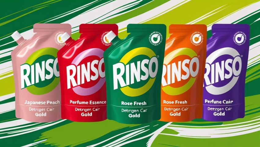 Rinso memiliki berbagai jenis deterjen, termasuk yang cair, bubuk, dan formula khusus untuk mesin cuci dan cuci tangan.
