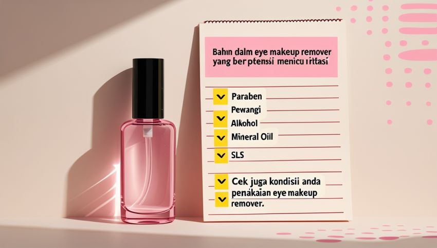 Hindari eye makeup remover yang mengandung alkohol berlebihan atau parfum yang dapat menyebabkan iritasi pada kulit sensitif di sekitar mata.