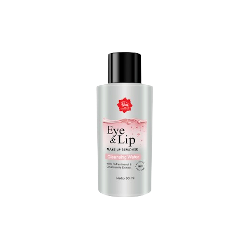 Viva Eye and Lip Make Up Remover menghapus makeup waterproof dengan lembut tanpa iritasi, dilengkapi ekstrak chamomile untuk menjaga kelembapan dan mencegah gatal.