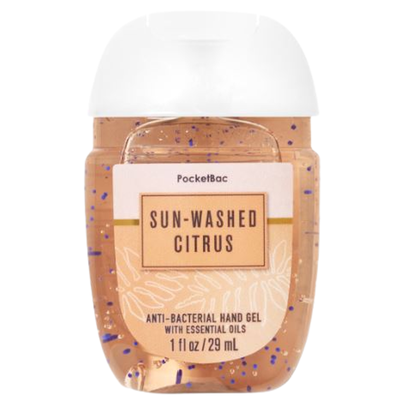 Sun-Washed Citrus, hand sanitizer dengan aroma segar lemon, nanas, dan jeruk mandarin. Menghilangkan bau tak sedap dan melembapkan tangan dengan vitamin E.