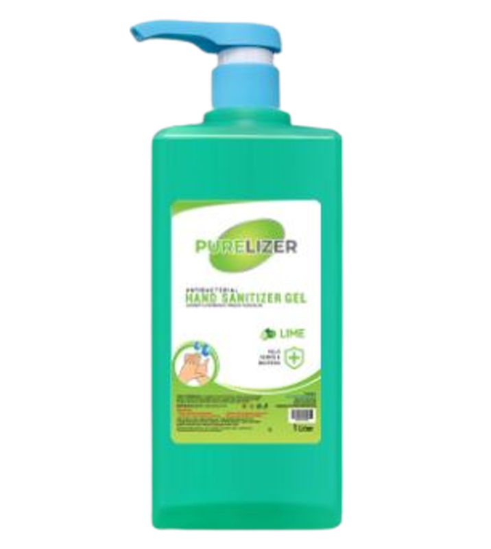 Hand Sanitizer Gel 1 Liter Purelizer dengan kandungan alkohol 70% dan aroma lime, efektif untuk membersihkan tangan dengan praktis. Ideal untuk penggunaan isi ulang atau pemakaian banyak di kantor atau bisnis.