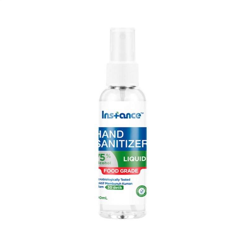 Instance Hand Sanitizer Spray Food Grade aman untuk peralatan makan dan tangan. Dengan kandungan alkohol 75%, efektif membunuh kuman tanpa membuat kulit kering.