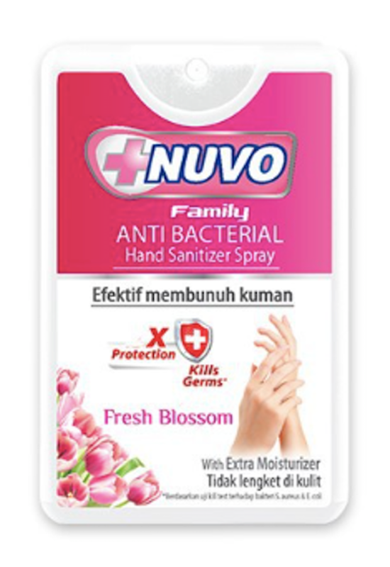Nuvo Hand Sanitizer Spray KTK hadir dalam kemasan compact, praktis dibawa ke mana saja. Dengan kandungan alkohol 70%, efektif membunuh kuman hingga 250 kali semprot.