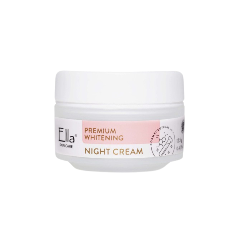 Ella Skincare Premium Whitening Night Cream mengandung retinol, niacinamide, dan chromabright untuk mencerahkan, meratakan warna kulit, dan mengurangi flek hitam. Formula kuat dengan dosis tinggi memberikan hasil cepat untuk kulit glowing dan lembap.