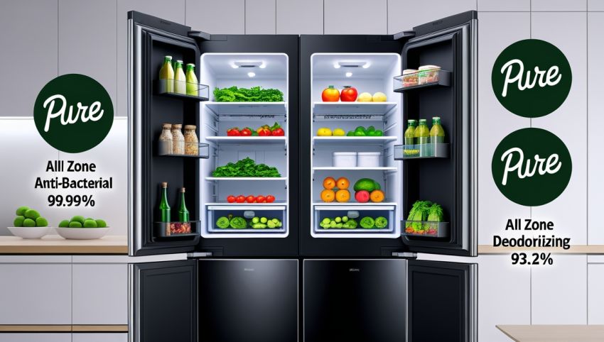 Daging, ikan, sayur, dan buah rentan terkontaminasi bakteri atau menjadi bau. Untuk itu, pertimbangkan kulkas yang mencantumkan deodorizer atau plasmacluster sebagai keunggulan pada deskripsi produk atau tabel spesifikasinya. Kedua fitur ini menjaga udara dalam kulkas tetap segar dan mencegah kontaminasi aroma antarmakanan.