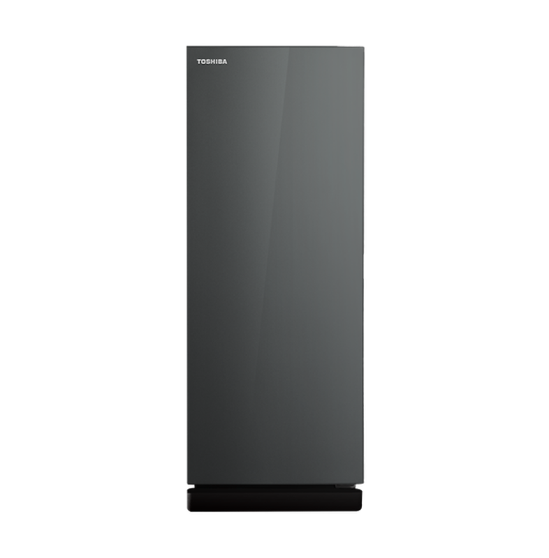 Kulkas Toshiba 1 pintu dengan kapasitas 151L, hemat energi, dan rak tempered glass tahan hingga 150 kg.