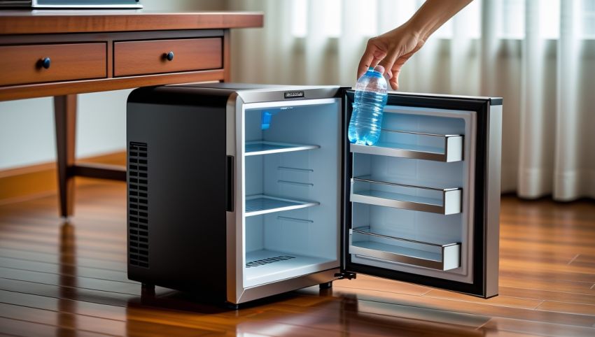 Untuk mendinginkan makanan jadi dan minuman, utamakan model kulkas minibar; Kulkas mini showcase bisa dipertimbangkan jika Anda hanya menyimpan minuman saja