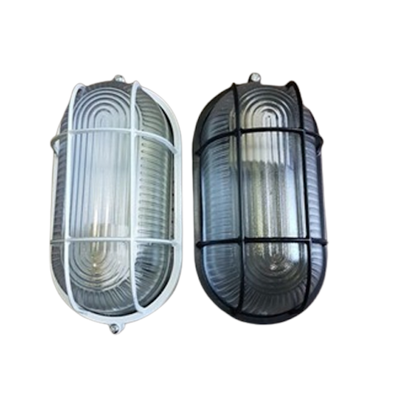 Lampu Ball Ice dengan kerangka pelindung tambahan, tahan pecah dan cocok untuk outdoor. Dilengkapi fitting E27, tersedia warna hitam dan putih.