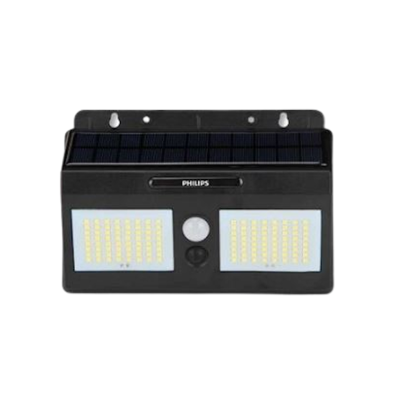 Lampu dinding outdoor Philips dengan 3 pilihan output cahaya untuk kenyamanan pencahayaan. Tahan air & debu (IP54) dan hemat energi menggunakan tenaga surya.