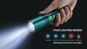 • Empat mode pencahayaan (terang, redup, flash, SOS).