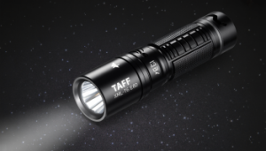 Senter taktikal TaffLED dengan lampu LED Cree XM-L T6 menghasilkan cahaya 3800 lumen dan jarak tembak 500 meter, dilengkapi dengan lima mode pencahayaan untuk berbagai situasi.