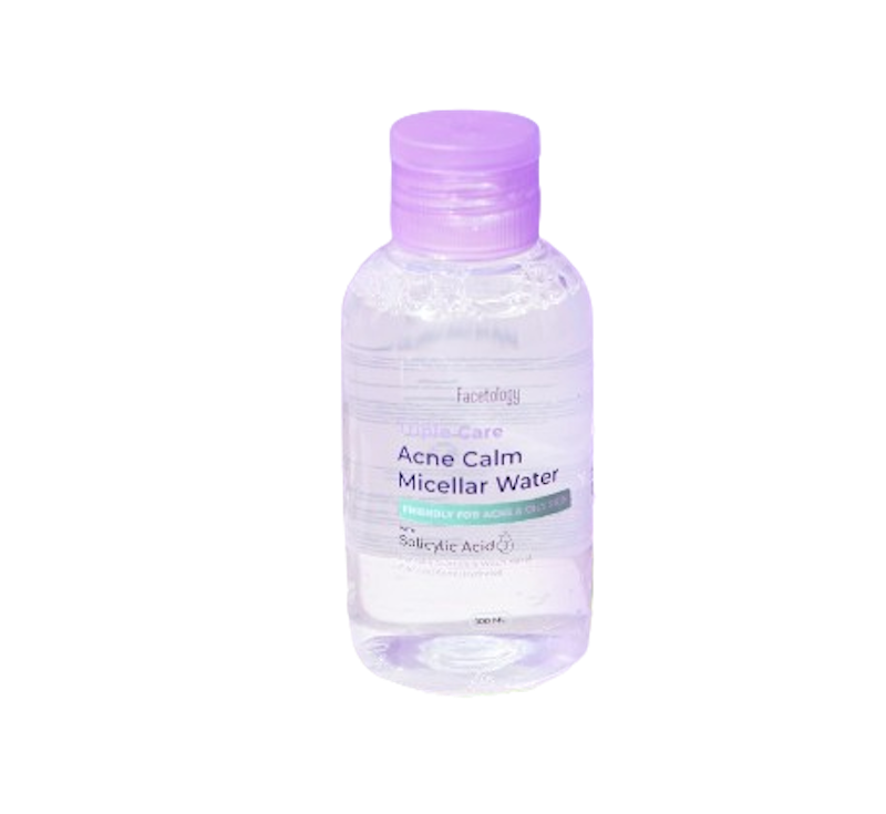 Facetology Triple Care Acne Calm Micellar Water efektif untuk kulit berminyak dan berjerawat. Mengandung salicylic acid, Centella asiatica, dan witch hazel, membersihkan kotoran dan minyak tanpa iritasi, serta meredakan jerawat dan kemerahan.