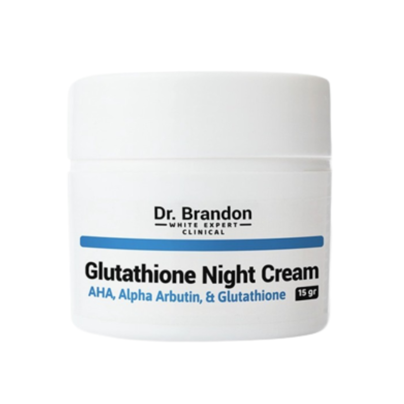Dr. Brandon Glutathione Night Cream membantu mengatasi kulit belang, kusam, dan noda hitam. Diformulasikan dengan AHA, alpha arbutin, dan glutathione, krim malam ini mencerahkan kulit lebih cepat dan mengecilkan pori-pori.