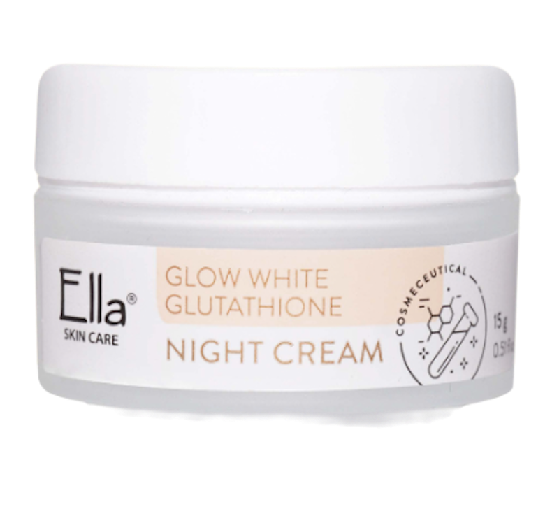 Ella Skincare Glow White Glutathione Night Cream mengatasi flek hitam, penuaan, dan kulit berminyak. Diformulasikan dengan glutathione, alpha arbutin, dan hyaluronic acid untuk kulit cerah, kencang, dan terhidrasi tanpa rasa berminyak.