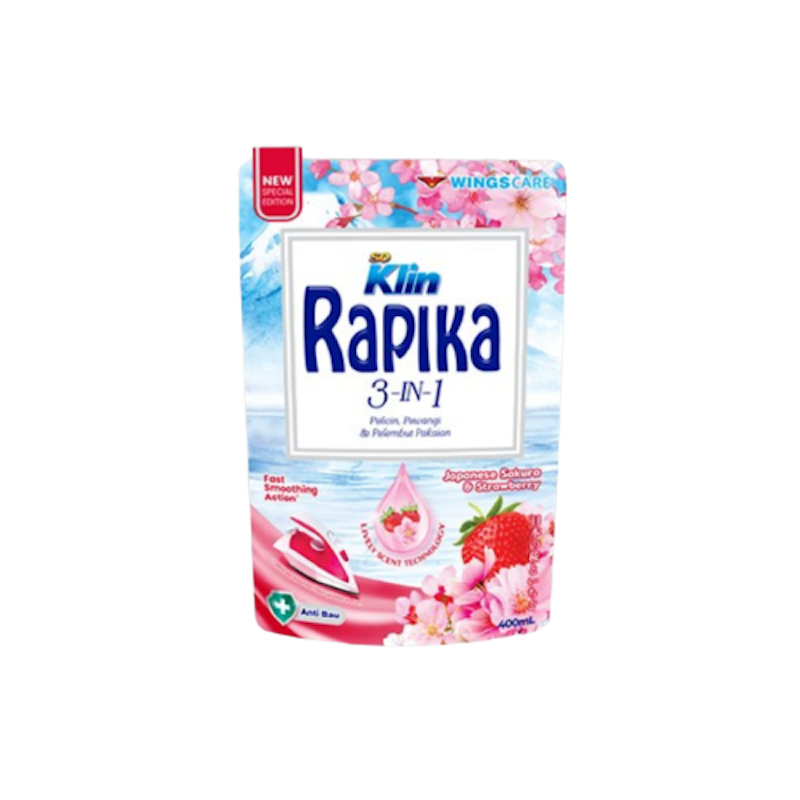 SoKlin® Rapika Sakura Strawberry memberikan aroma sakura lembut dan strawberry segar pada pakaian Anda sepanjang hari.