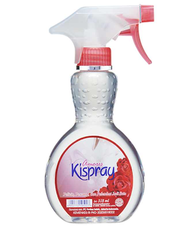 Kispray Amoris, pelicin pakaian dan pewangi serbaguna untuk linen, ruangan, serta menghilangkan bau apak pada karpet dan sofa.