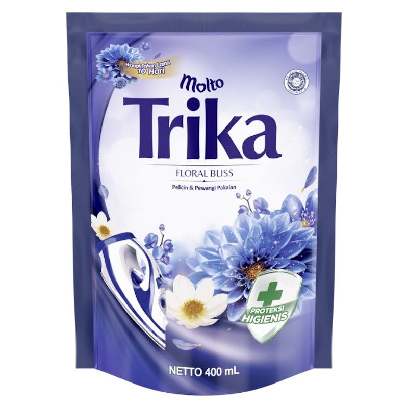 Molto Trika Floral Bliss memberikan aroma bunga dan herbal yang tahan hingga 10 hari, menjaga pakaian tetap segar dan bersih dengan formula antibakteri.