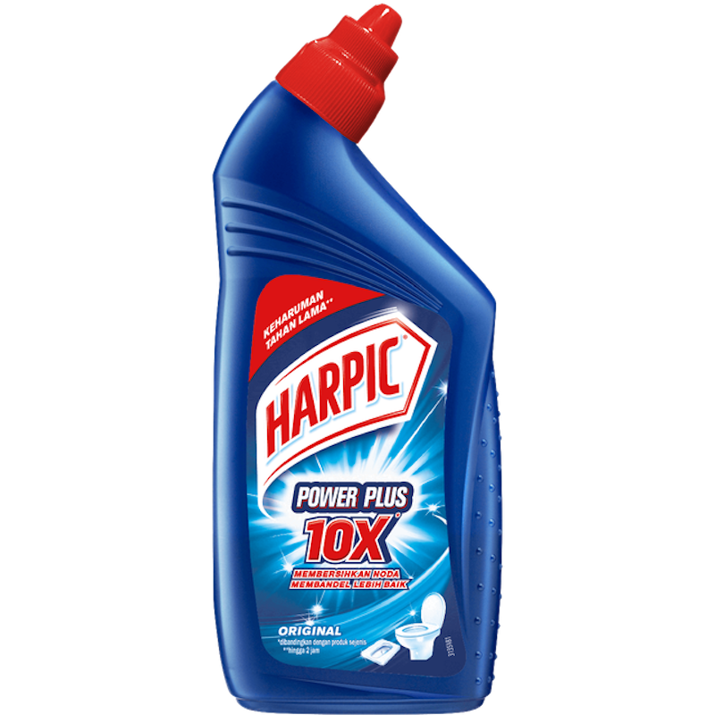 Harpic Power Plus Original membersihkan noda membandel di toilet dengan kekuatan 10x lebih efektif, menghilangkan kuman dan bau tak sedap, serta memberikan aroma segar yang tahan lama.