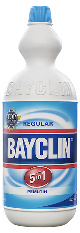 Bayclin Regular efektif memutihkan pakaian putih, mengembalikan warna cerah, dan dapat digunakan sebagai disinfektan untuk rumah.