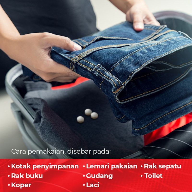 - Efektif menghilangkan bau tak sedap di lemari dan ruangan