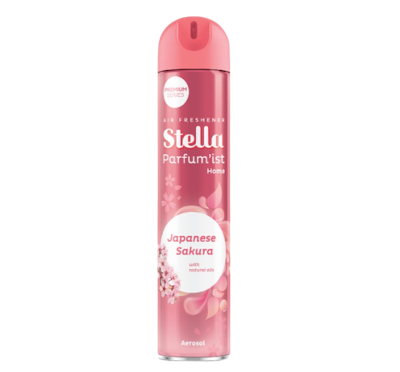 Nikmati kesegaran bunga sakura yang memikat dengan Stella Aerosol, pewangi ruangan praktis yang tahan lama.