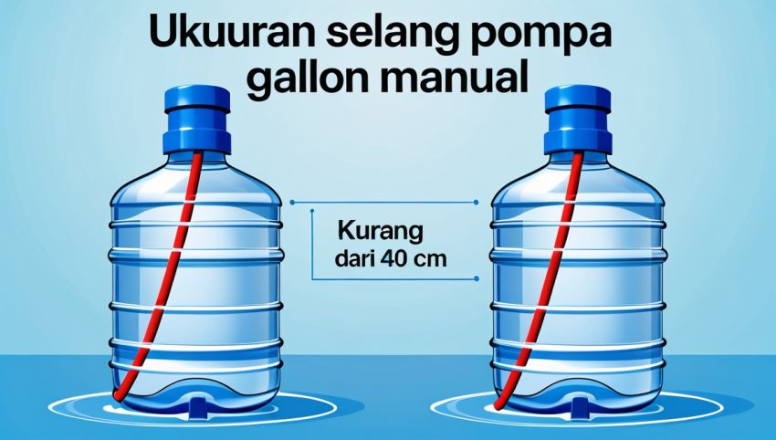 Ukuran selang yang tepat akan mempermudah Anda dalam memompa air dari galon. Jika Anda menggunakan galon dengan kapasitas 21 liter, pilih pompa dengan selang lebih panjang dari 40 cm. Ukuran selang ini akan cukup panjang untuk menyentuh dasar galon, memungkinkan Anda memompa air hingga habis tanpa ada sisa.