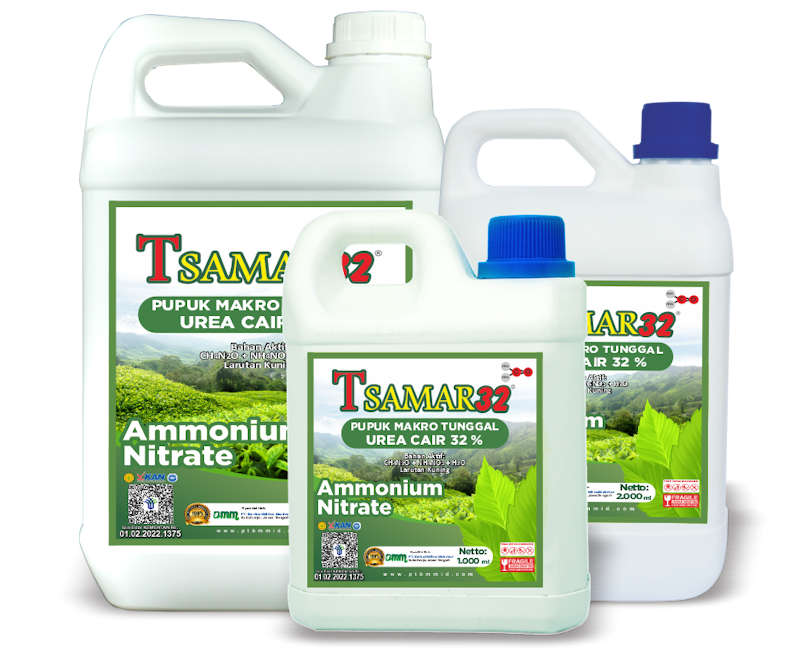 Pupuk TSAMAR32 cair dengan 32% nitrogen, cepat diserap tanaman, efektif untuk fase starter dan penguatan akar, menggantikan pupuk urea 46% hingga 100 kg.