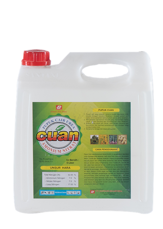 - Urea Amonium Nitrat (UAN): Pupuk cair dengan kandungan nitrogen 28–32%, dapat disemprotkan bersama pestisida atau nutrisi lainnya.
