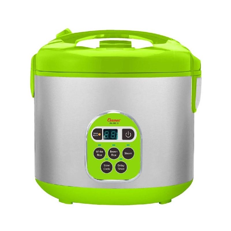 Cosmos Digital Rice Cooker 5in1 Multifunction 2L hadir dengan 5 fungsi memasak, termasuk mengukus dan membuat sup. Dilengkapi tongolan magicap untuk nasi pulen dan fitur penghangat otomatis. Desain dengan aksen hijau ceria cocok untuk dapur modern.