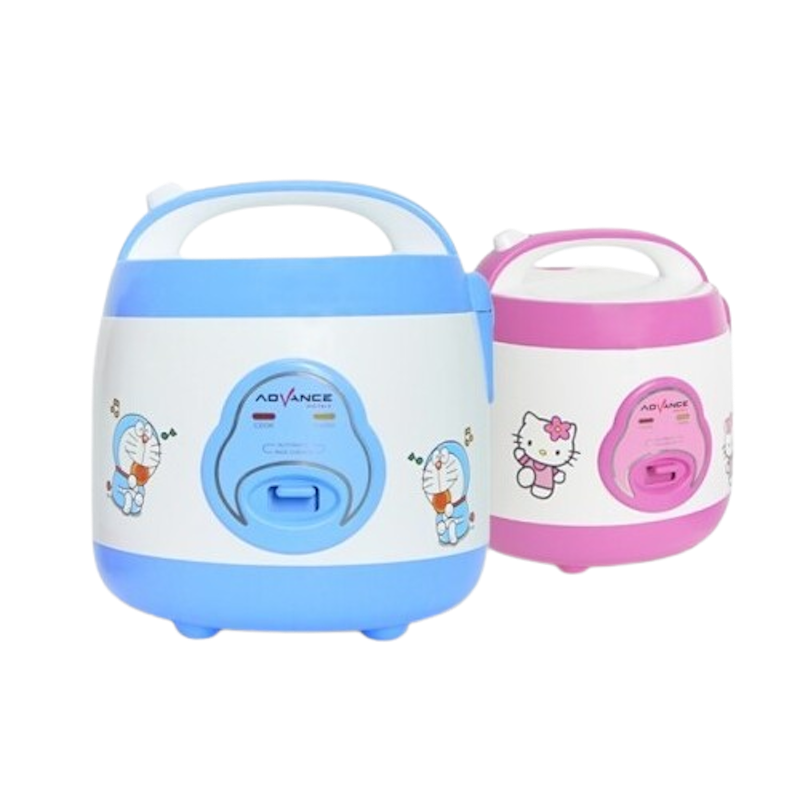 Advance Rice Cooker Mini 1.2 L, desain manis dengan karakter kartun Hello Kitty atau Doraemon. Tiga fungsi utama: memasak, menghangatkan, dan mengukus. Praktis dan mudah digunakan untuk kebutuhan sehari-hari.