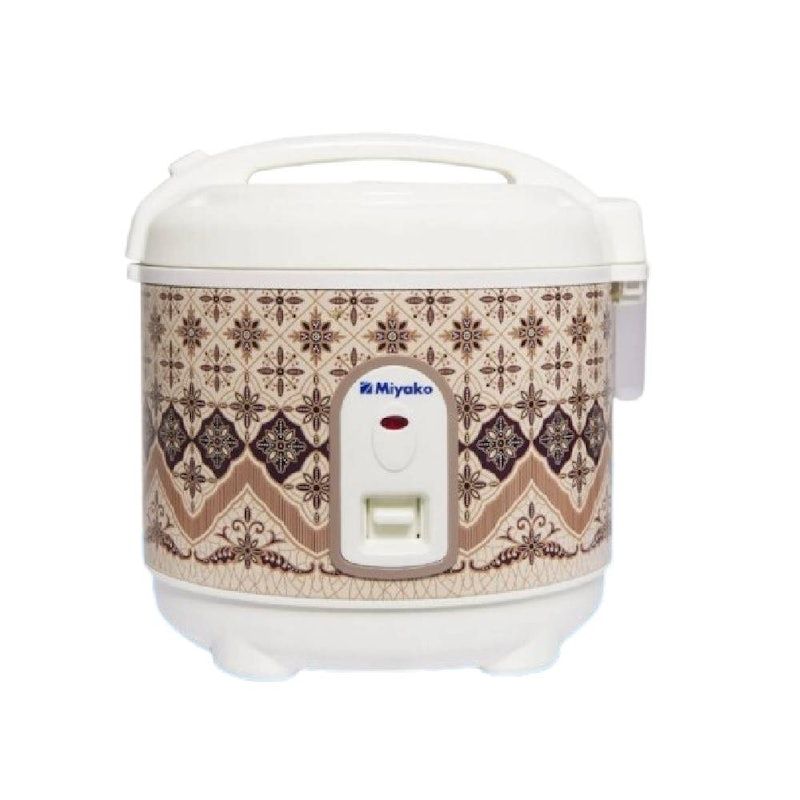 Miyako Rice Cooker 0.6 L dengan motif batik khas Indonesia, kapasitas ideal untuk kos. Dilengkapi inner pot antilengket, hemat energi hanya 300 watt.