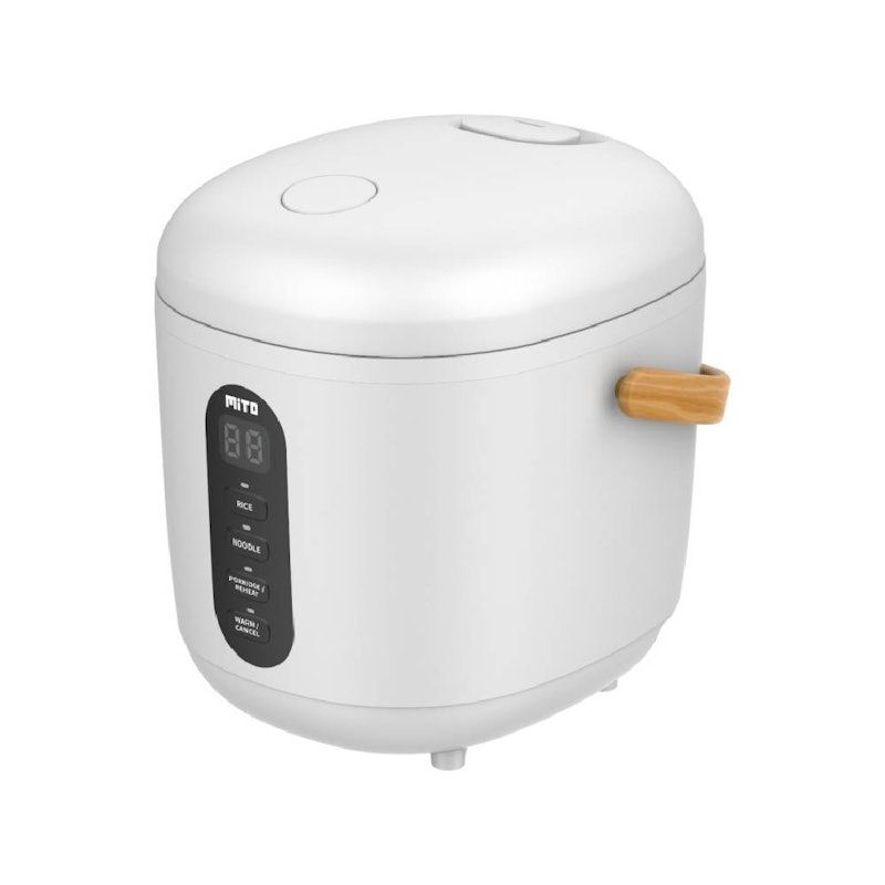 MITO Digital Wood Mini Rice Cooker 0,5L, dengan desain modern cocok untuk dapur minimalis. Dilengkapi fitur porridge, ideal untuk MPASI dan bubur. Tampilannya estetik dengan handle kayu dan panci berkualitas.