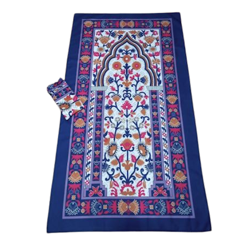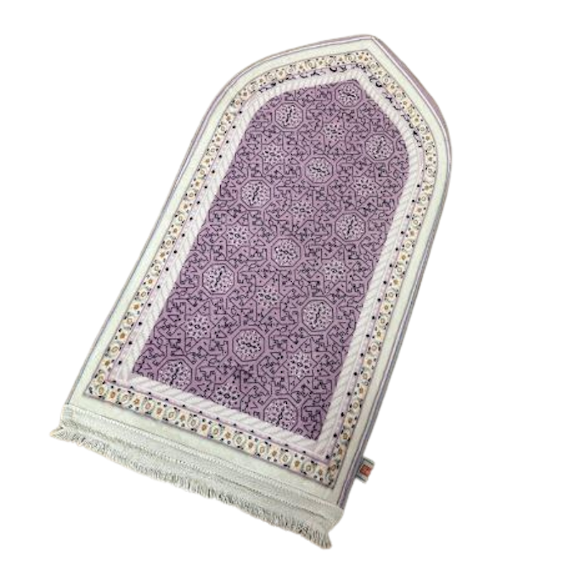 Sajadah dengan desain kubah dan warna estetik, dilengkapi bahan anti-slip untuk kenyamanan ibadah.