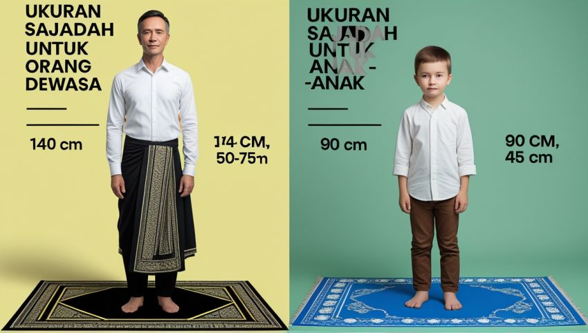 Sajadah untuk anak-anak biasanya lebih kecil, sekitar 45 cm x 90 cm. Perhatikan tinggi anak agar saat sujud tetap berada di atas sajadah. Jika anak Anda lebih tinggi, pilihlah sajadah yang lebih besar agar lebih nyaman.