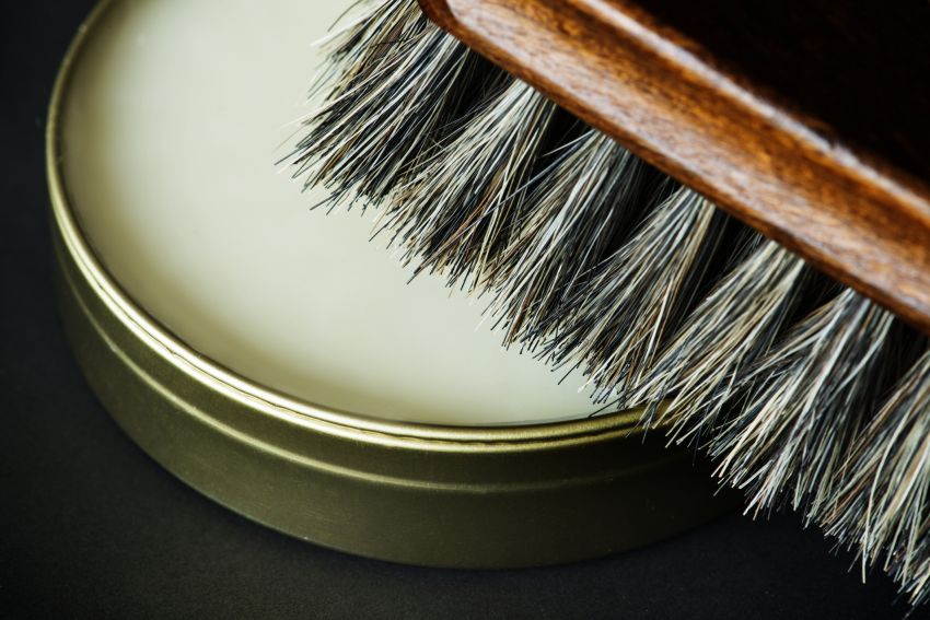 - Ratakan semir dengan menggunakan sikat bulu babi (pig bristle brush).