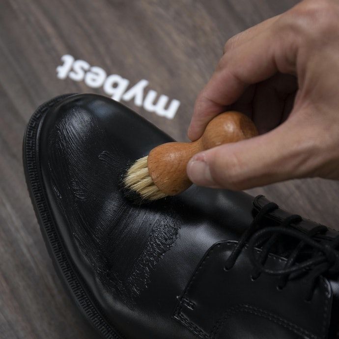 Gunakan kain atau sikat untuk mengoleskan semir sepatu secara merata, kemudian poles dengan kain bersih untuk mendapatkan kilau optimal.
