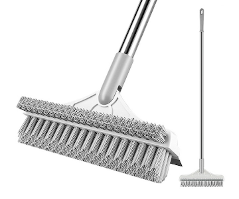 Untuk membersihkan lantai dan dinding, pertimbangkan sikat gagang panjang yang multifungsi