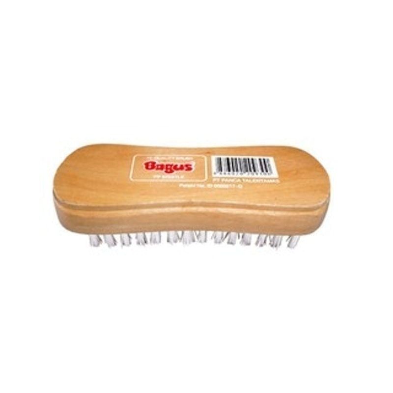 Sikat lantai Bagus dengan handel ergonomis, bahan kayu yang kuat, dan bulu sikat nylon rapat. Ideal untuk membersihkan sepatu, baju, dan lantai.