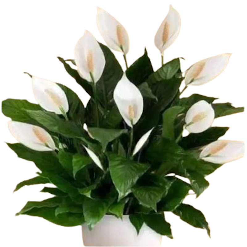 Tanaman Peace Lily dengan daun hijau dan bunga cantik, mudah dirawat, menyaring polusi udara, serta cocok untuk interior rumah dengan cahaya sedang.