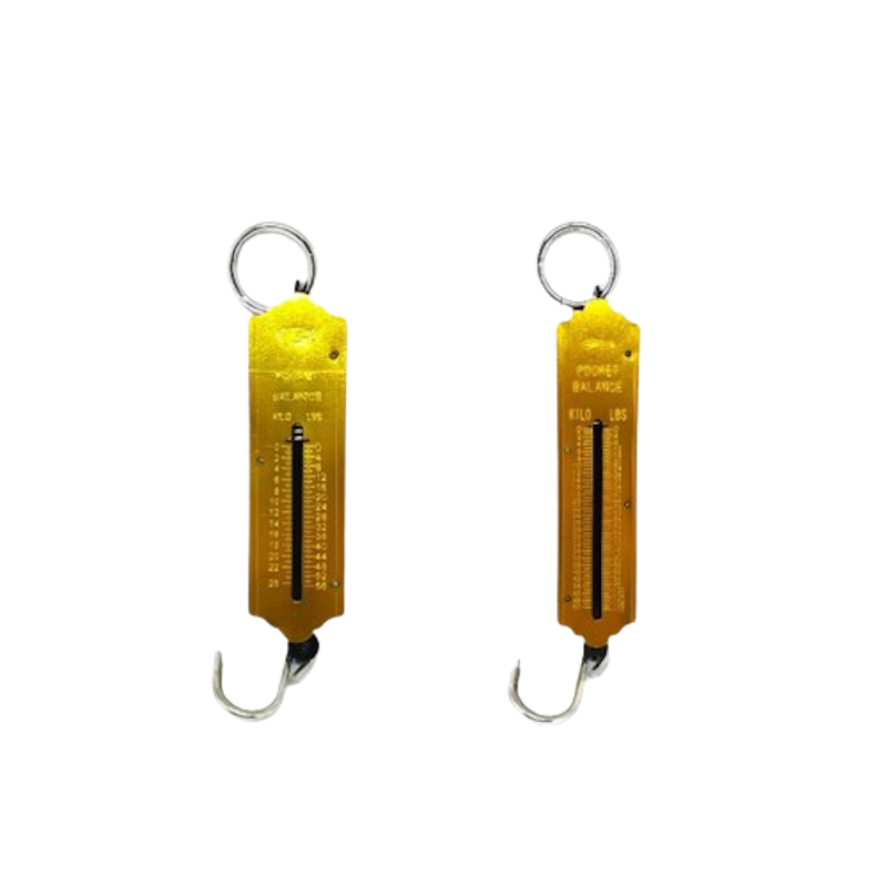 Timbangan gantung manual dengan desain per yang mudah digunakan, tahan lama, dan memiliki dua satuan berat (kg, lbs). Ideal untuk penggunaan sehari-hari.