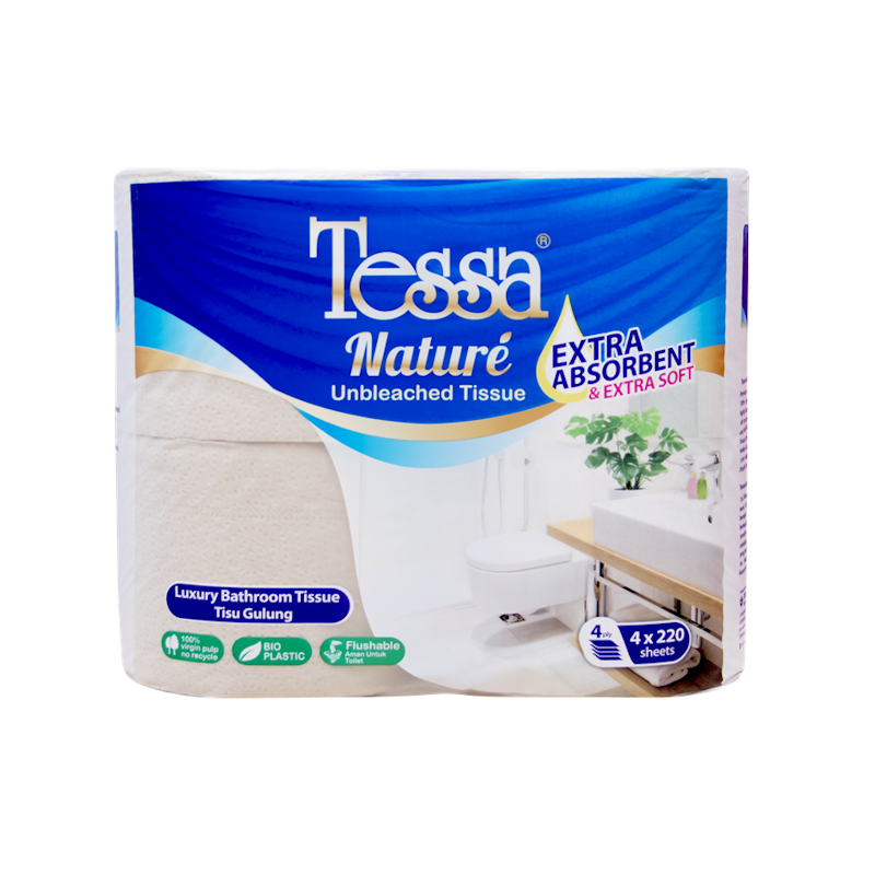 Tessa Nature Luxury Bathroom Tissue hadir dengan lapisan 4 ply yang ekstra tebal, tidak mudah sobek, dan menyerap air lebih banyak. Dengan serat alami, tisu ini bebas pewarna dan bahan kimia, aman digunakan serta ramah lingkungan.