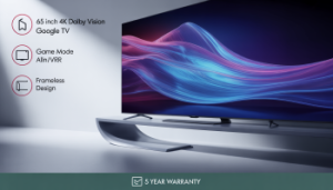 SHARP 50 Inch 4K Frameless Google TV dengan desain frameless modern, Dolby Atmos dan Dolby Vision, memberikan kualitas gambar dan audio yang memukau untuk pengalaman menonton yang lebih mengesankan.