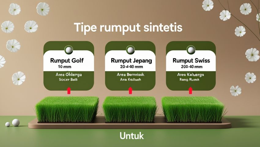 Rumput sintetis tersedia dalam berbagai tipe dengan karakteristik yang berbeda. Berikut adalah tiga tipe utama rumput sintetis yang sering ditemukan di pasaran: