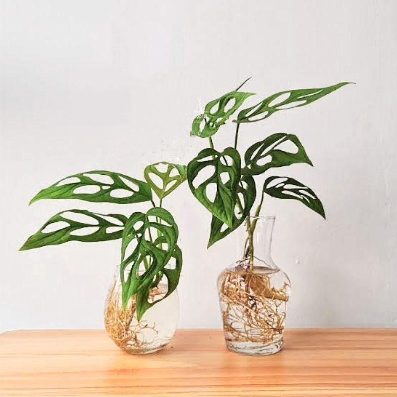 Janda Bolong Air, tanaman hias indoor yang estetik dan dapat menyerap racun, membuat udara di rumah lebih segar. Mudah perawatannya, cukup tanam dalam pot kaca berisi air dan nikmati keindahannya.