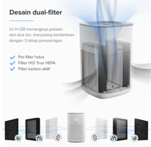 - Dilengkapi tiga filter untuk udara lebih bersih